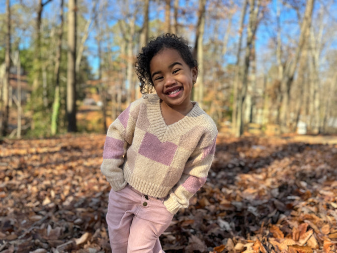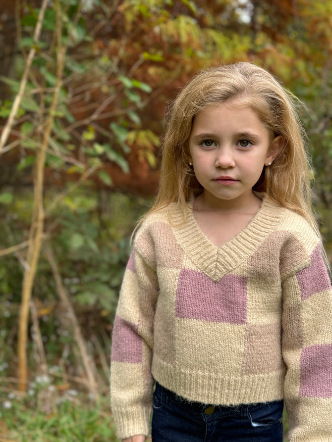 Our Jackie Sweater is a fan favorite. With its delightful muted tones and fun checkered print your little one is sure to adore this darling little sweater!