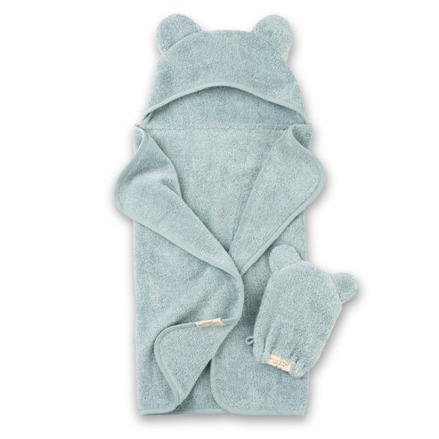 Splish splash! This set includes everything you need for baby’s bath time. Featuring a cozy, ultra-soft hooded towel and coordinating wash mitt. The little ears may not help them listen better, but they sure are cute! Our absorbent terry fabric is made of OEKO-TEX® certified and sustainably sourced cotton and a recycled polyester that keeps 8 plastic bottles out of landfills.