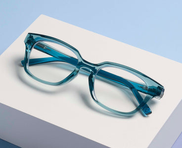 The sleek rectangular frames of Clive are a refined addition to any well-appointed wardrobe. This low-profile pair is available in a timeless translucent gray for a neutral look, or semi-transparent teal for when you want to add a little color. The temple step colorblock adds another element of dimension to this sophisticated style.