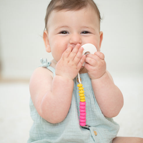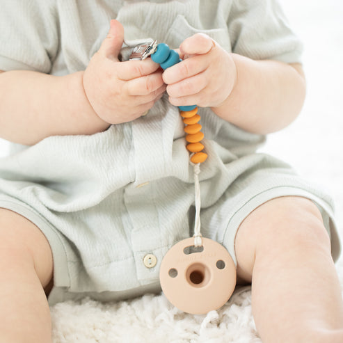 Never lose a pacifier again and look good while doing it. Our silicone pacifier clips are easy to mix and match with any outfit and the silicone beads create a clean, modern look. They work with any pacifier and keep them close, clean and most importantly, off the floor. Designed with a stainless steel clip that makes the entire product dishwasher safe, you can really clean these little darlings.