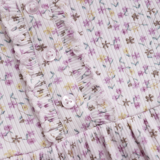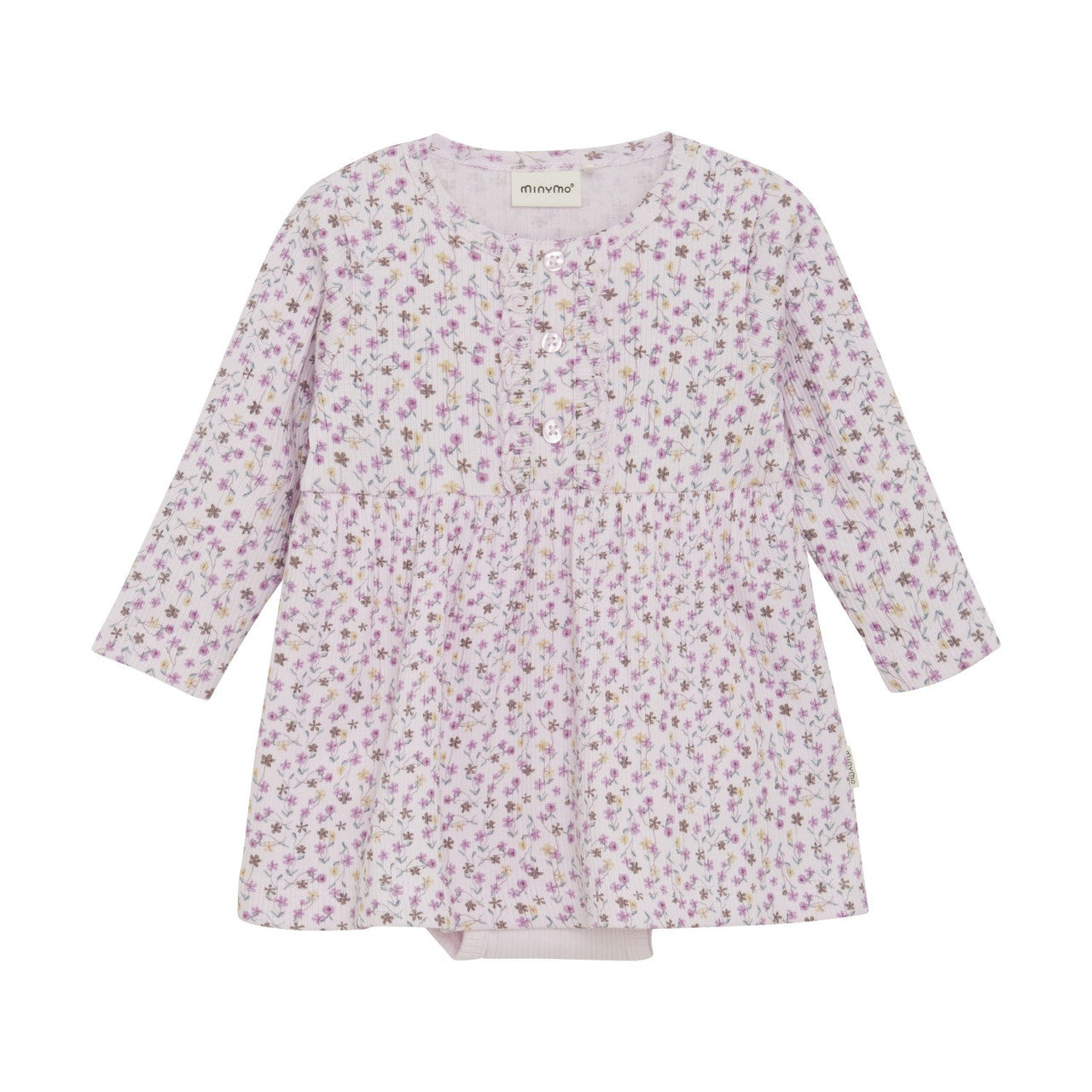 This charming long-sleeve dress from Minymo features a soft cotton blend with a delicate floral print that’s perfect for little girls. Frill details and gentle gathers add a sweet, playful touch, while snaps between the legs make diaper changes easy and convenient. This dress a comfy and adorable choice for your child’s everyday adventures.