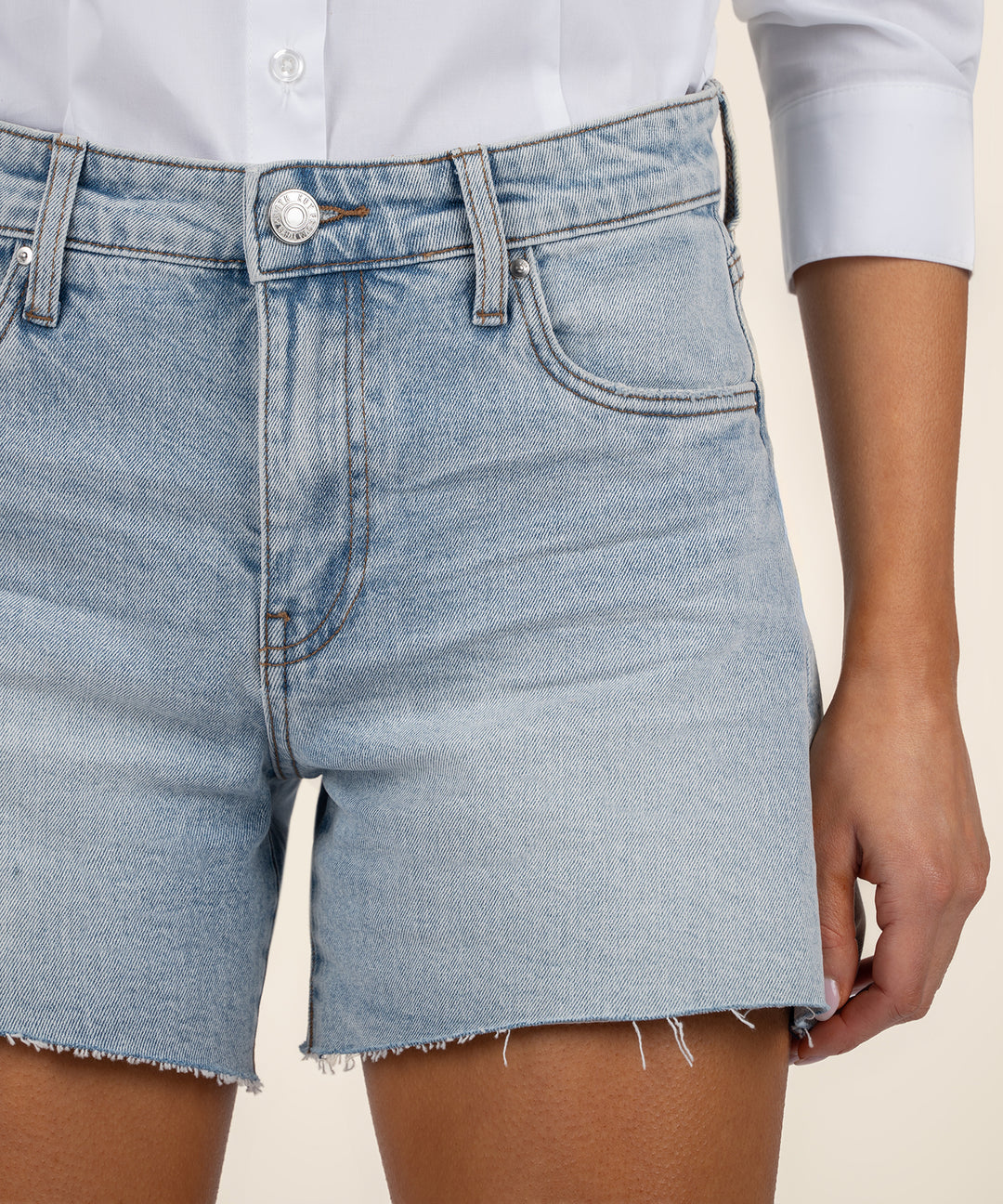 The high-rise waistline accentuates your figure, while the longer cut with raw hem offers just the right amount of coverage, making them perfect for a variety of occasions.