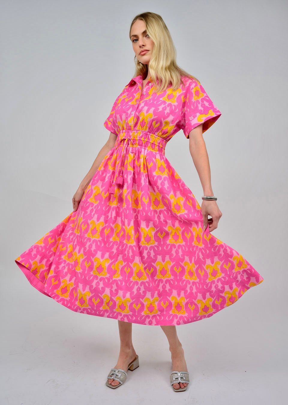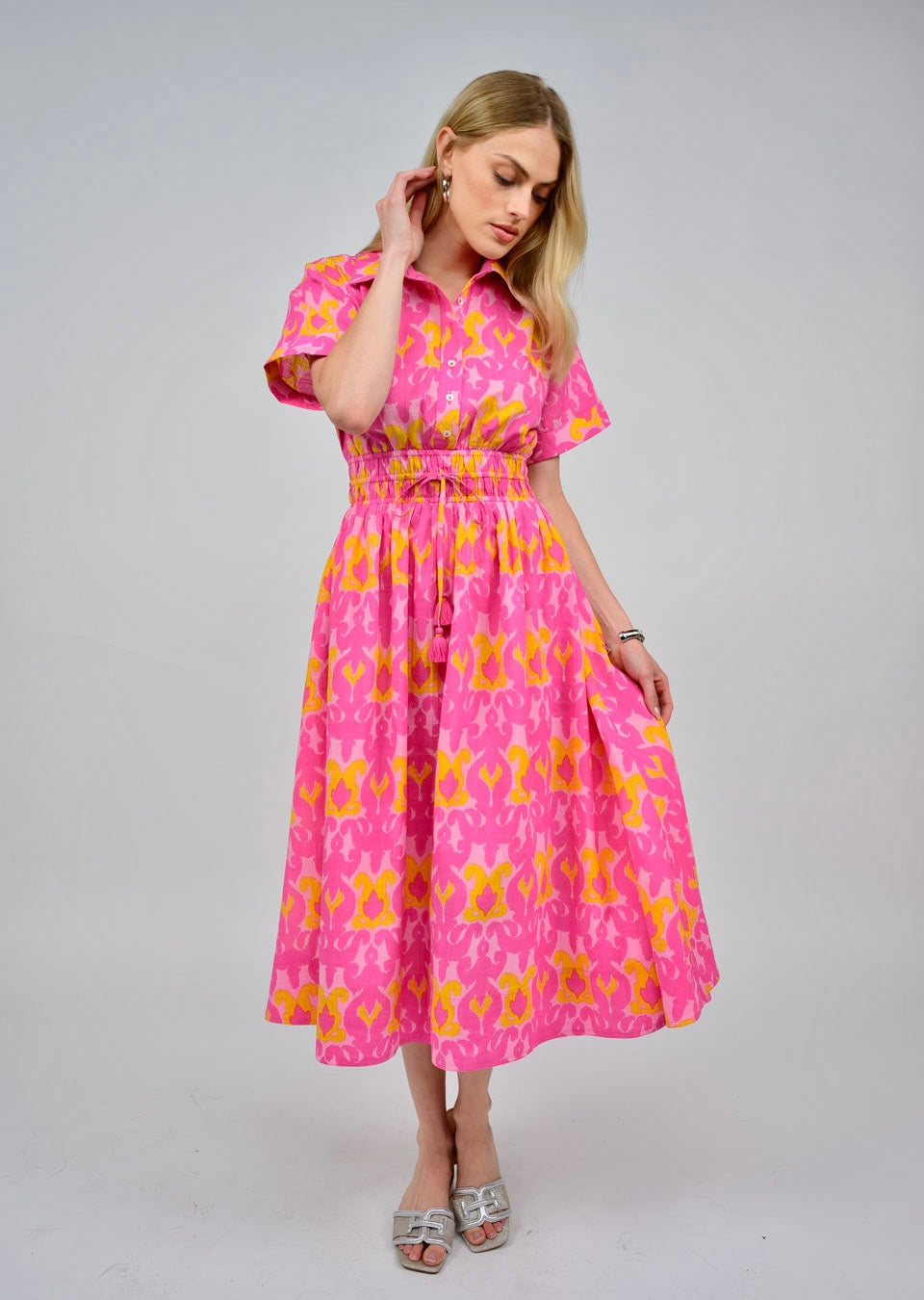 Get the best of fashion and function with the Ikatching Shirt Dress! Featuring tassel details, a drawstring waist, and functional pockets, you'll look stylish and be able to carry your essentials with ease. Plus, the pink color adds a playful and feminine touch. Don't miss out on this must-have piece!