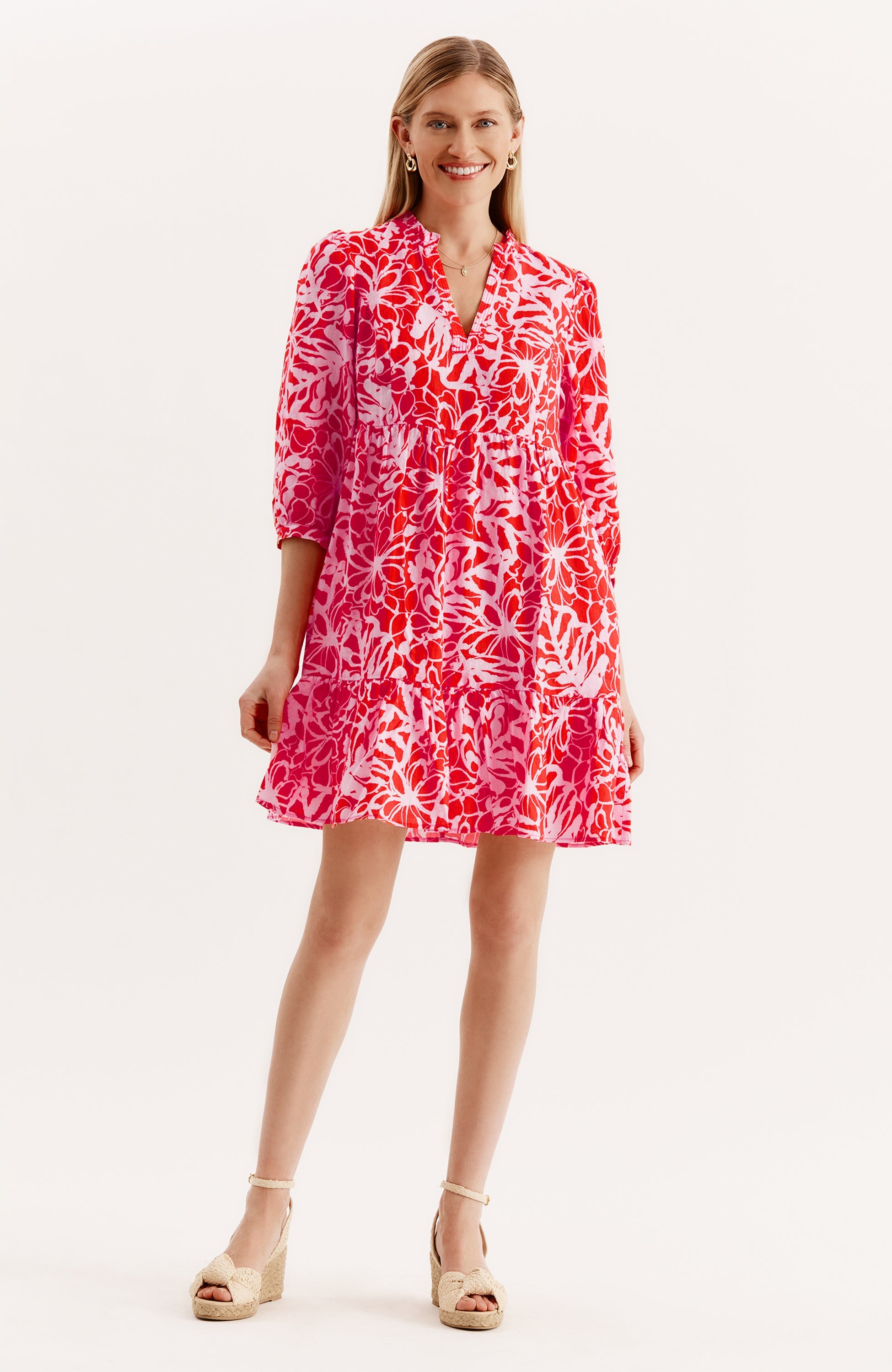 A Tyler Boe must-have for the season: Karlie has an A-line body that is flattering on everyone. With a ruffled hem and 100% cotton fabric, this easy breezy dress in our vibrant Etched Primrose print will be worn for years to come. Pair with flats or heels, this dress can be dressed up or down for multiple occasions.