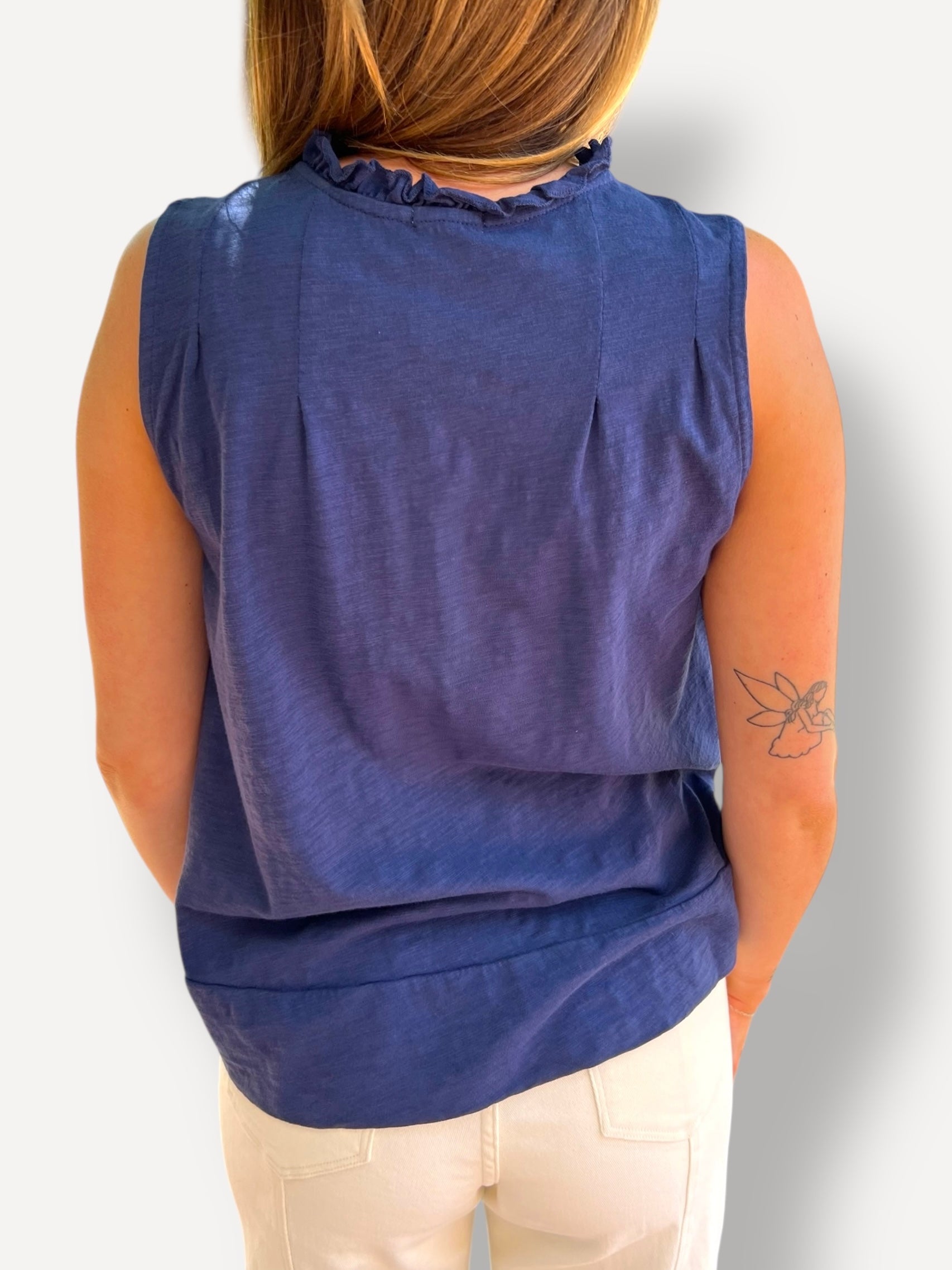 Indulge in effortless luxury with our Peplum Hi-Lo Top. Crafted from 100% cotton, this sleeveless top features elegant button detailing and a lightweight feel. Perfect for any occasion, its simple yet sophisticated design will elevate your wardrobe.