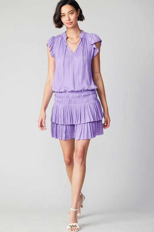 Indulge in the ultimate luxury with our Split Neck Tiered Mini Dress. This exquisite piece features elegant fold detail, bell sleeves, and a ruffled split neck with a self tie. The tiered design adds an extra touch of sophistication, making this the perfect dress for any special occasion. Elevate your wardrobe with this must-have piece.