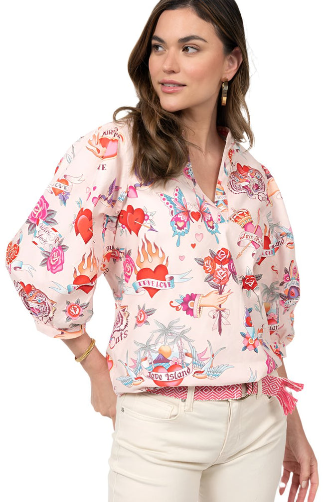The Ivy Jane True Love Top in Pink features a pullover style, rounded/V-neckline, peasant style sleeves, charming fabric and rounded high/low hemline. True to size. No pockets. This charming True Love Top in Pink is the perfect choice for Valentine's Day. Crafted in the USA from 100% cotton, it offers both comfort and quality. Elevate your style and make a lasting impression with this top.