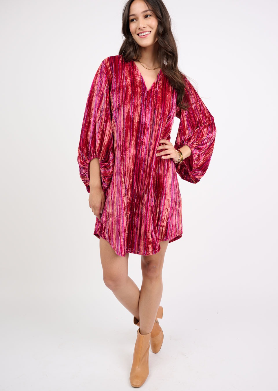 Ivy Jane V-Neck Velvet Striped Dress
