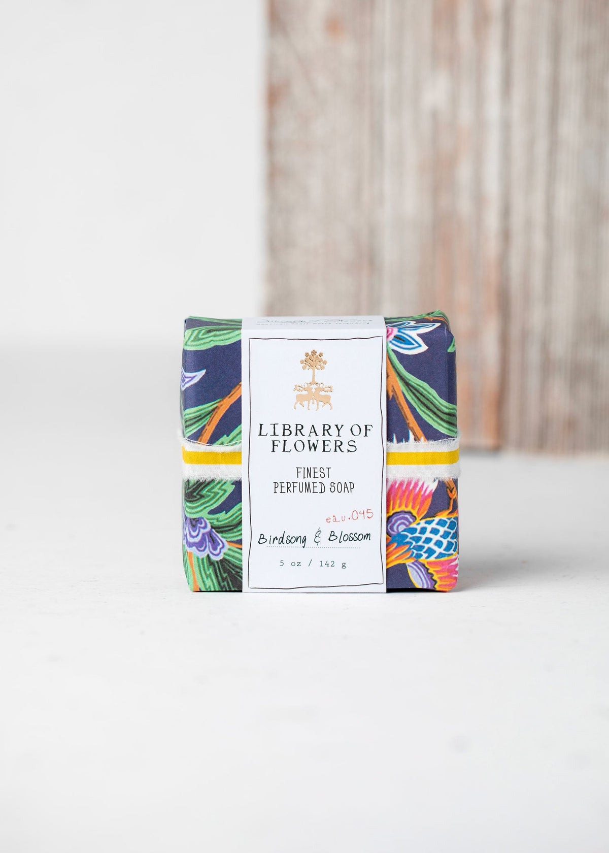 Library of Flowers Navy Birds & Butterflies Square Soap