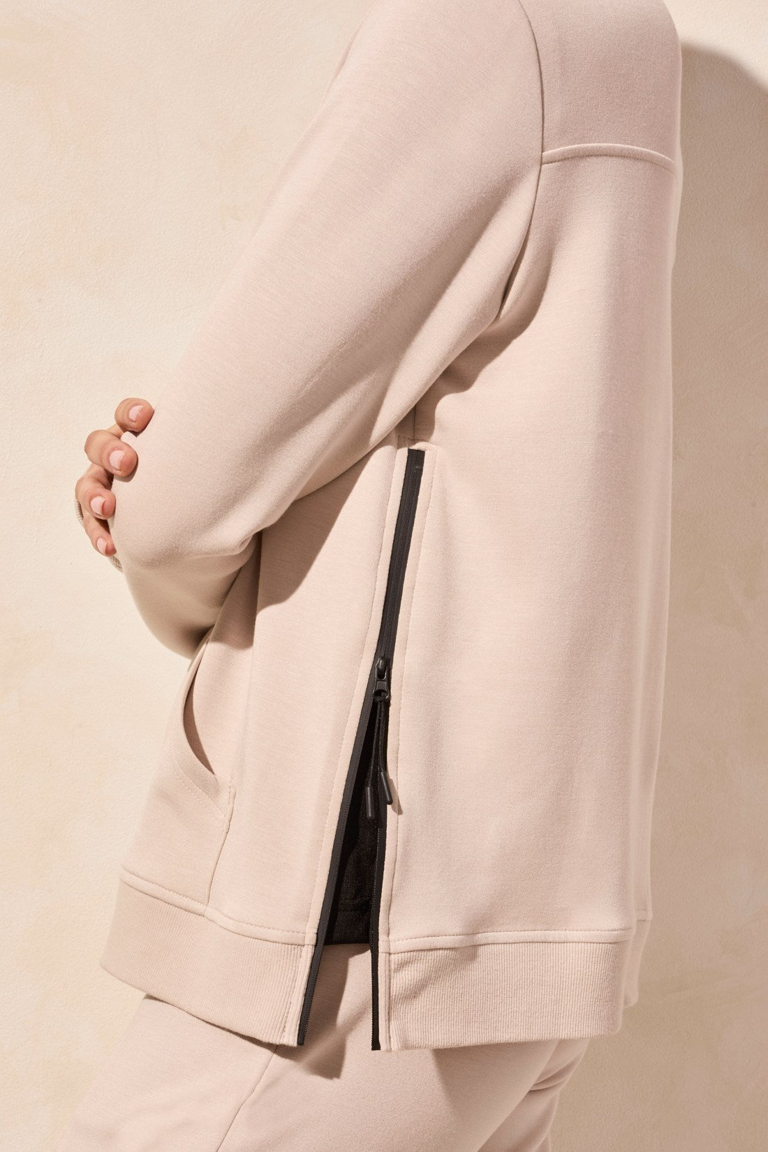 Enjoy cozy comfort with this lightweight long-sleeve cardigan, featuring a zip-up front and warm mock neckline. The ribbed waistband and cuffs help retain warmth, while contrast zipped side vents offer ventilation when needed. A kangaroo pocket provides convenient storage for your daily essentials. Pair with the Techno Lux Contrast Trim Pull-On Ankle Pants