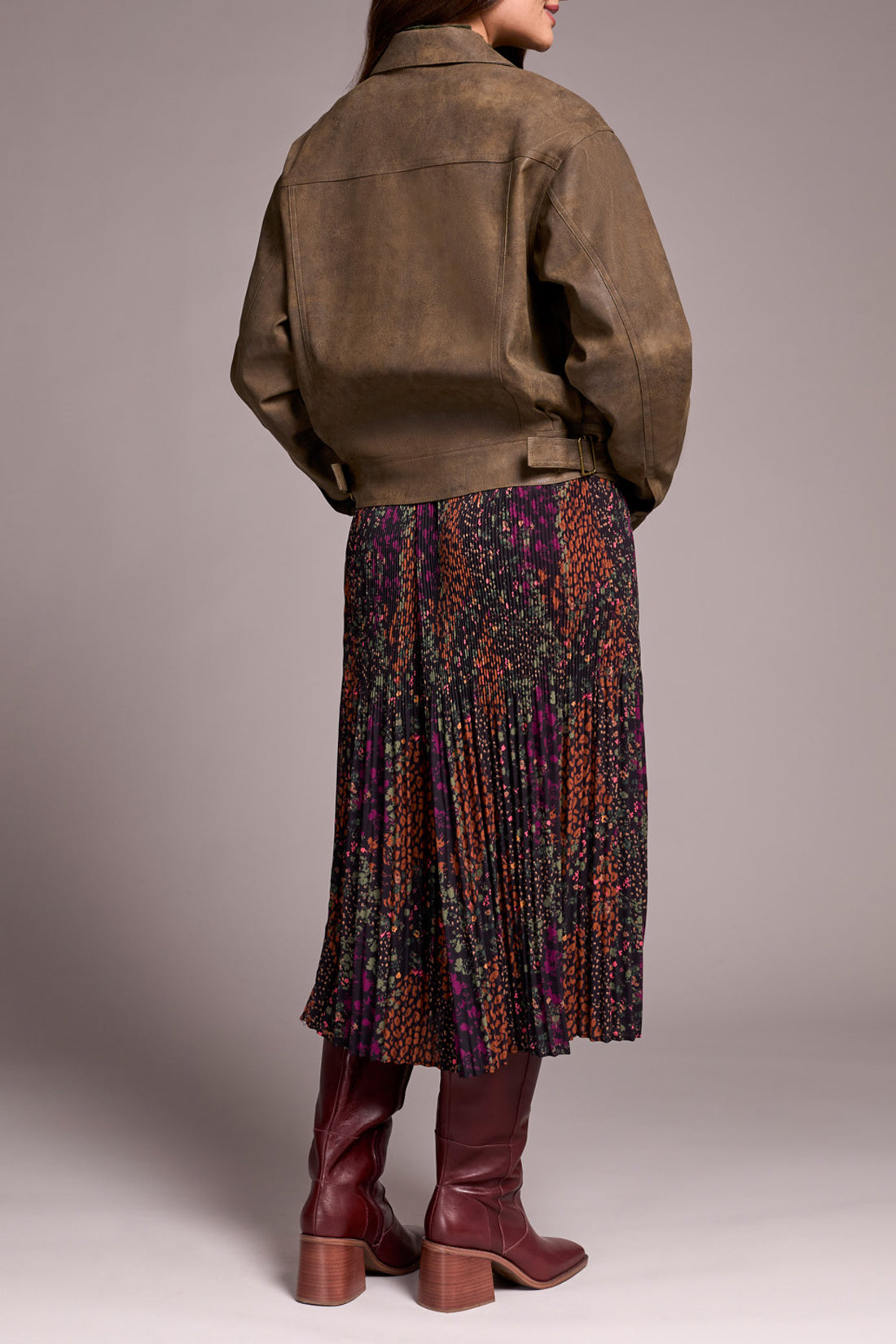 This faux leather jacket in rich cocoa features a sleek zip-front closure, front pocket detail and a side tab for a tailored fit. Designed by Tribal, this jacket is the perfect fall layering piece!
