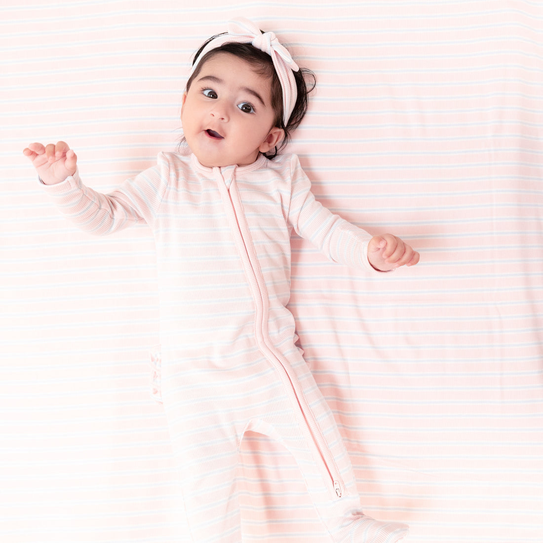 From dreamy naptimes to playful adventures, our Ruffle Back Footie wraps your little one in cozy comfort and delightful whimsy. Accessories sold separately.