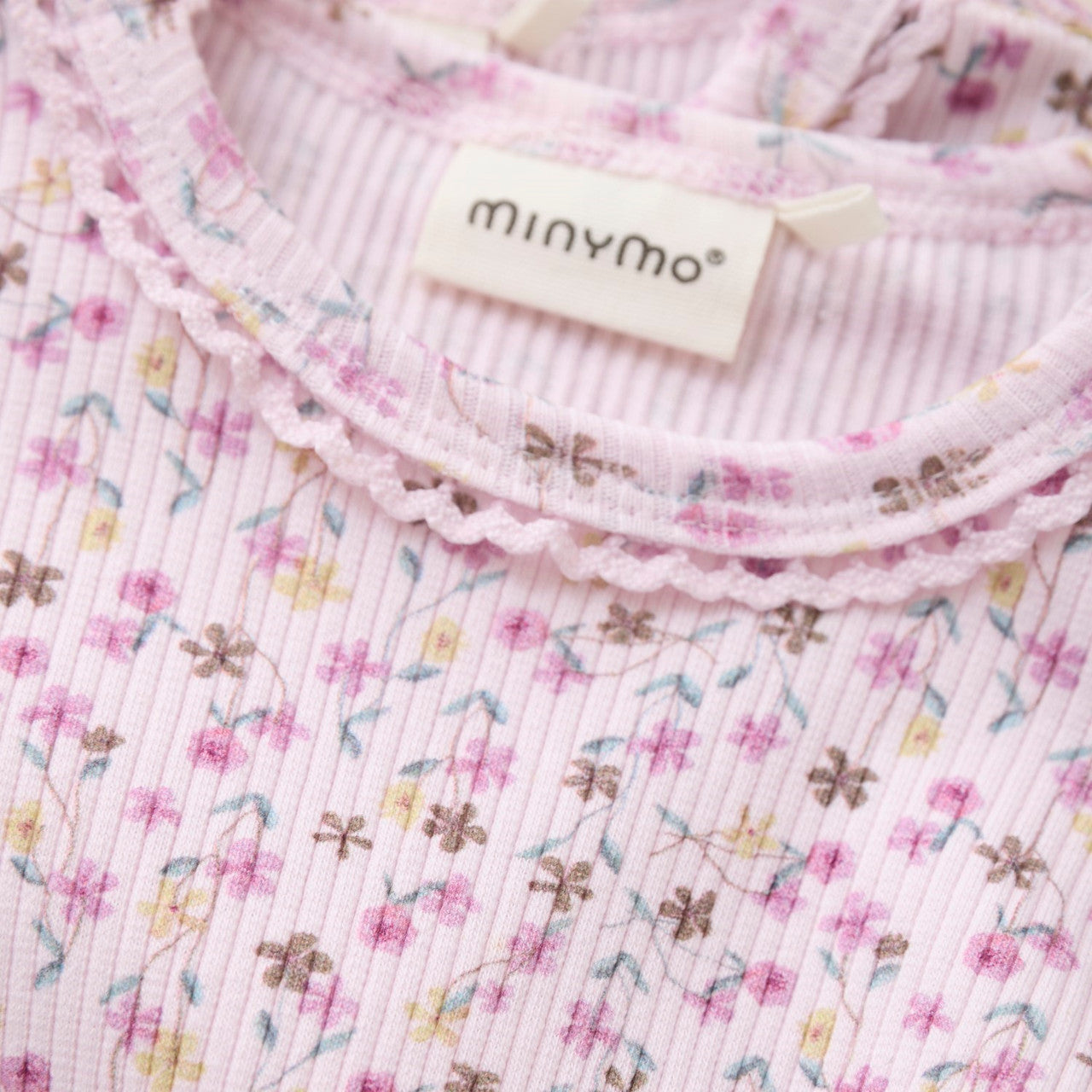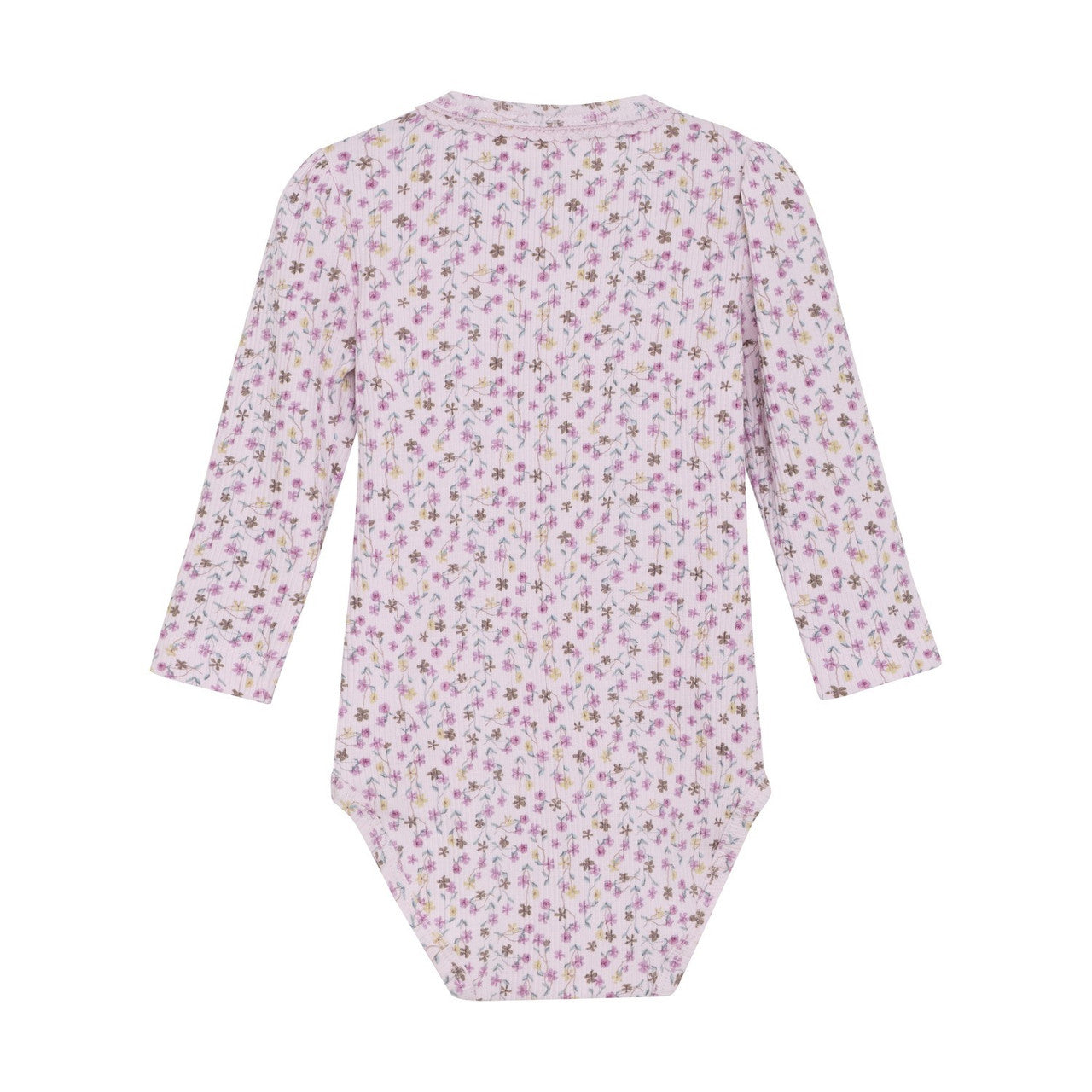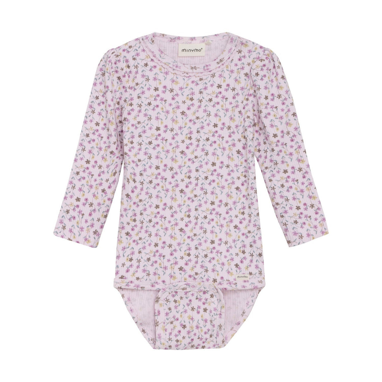 Keep your little one cozy and adorable in this Minymo long-sleeved bodysuit. Crafted from a soft cotton-elastane blend, it gently stretches for all-day comfort. Featuring a charming flower print and convenient snaps between the legs, dressing and diaper changes are a breeze.