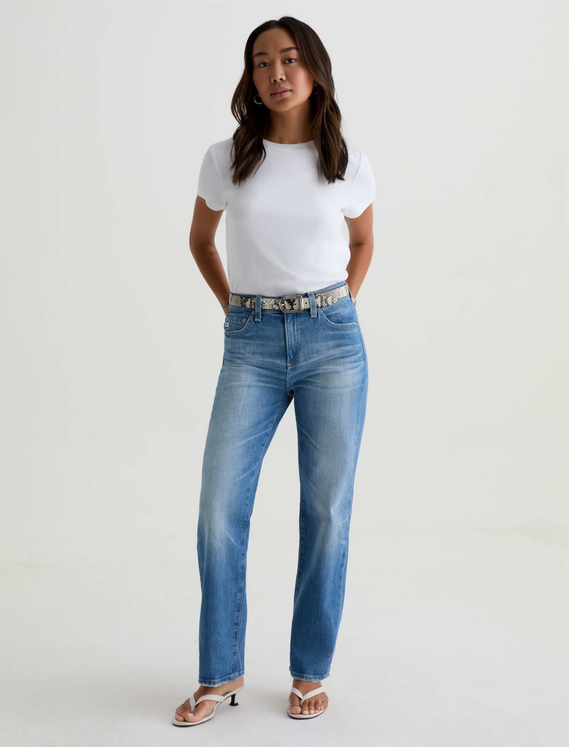 The Brinley Crop by AG is a straight-leg jean with a 27” inseam, crafted from Italian 11 oz. Journey Denim with a comfort stretch feel. Finished in an AG-ed™ medium wash that replicates 13 years of wear.