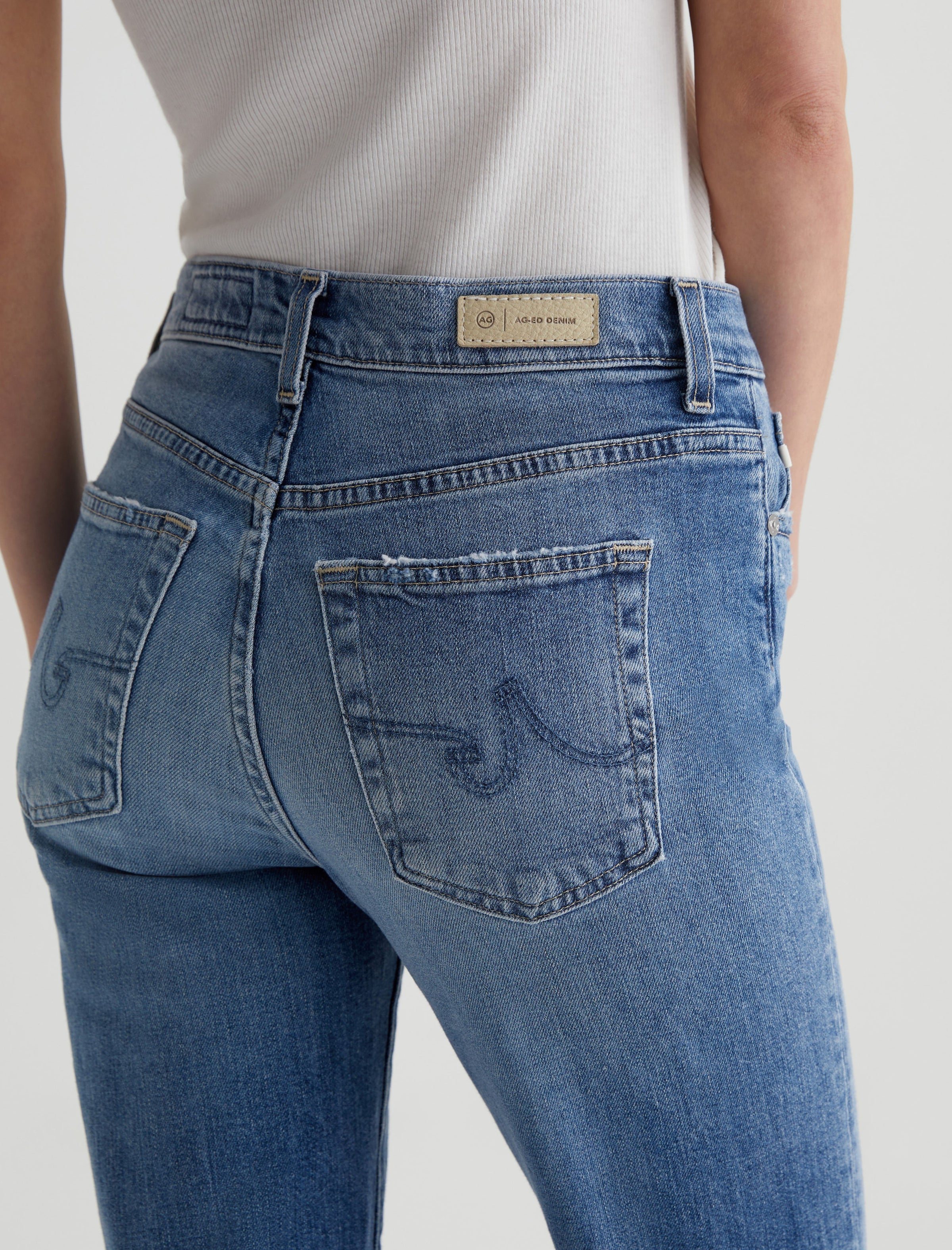 The Brinley Crop features a mid-rise waist and a classic straight-leg silhouette with raw, ankle-baring hems. These cropped jeans come in Vintage Comfort Stretch Denim from Italy. Custom-developed by our designers, the medium indigo AG-ed™ wash has a natural-looking fade, wear along the edges, and a small amount of distressing at one of the hip pockets.