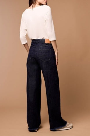 Introducing the Brooke Wide Jeans, a masterpiece by Tribal. Crafted with a wide leg design in luxurious dark denim, these jeans hug your body in all the right places. Made of 99% cotton and 1% spandex, they offer both comfort and style. Elevate your wardrobe with these exclusive jeans.