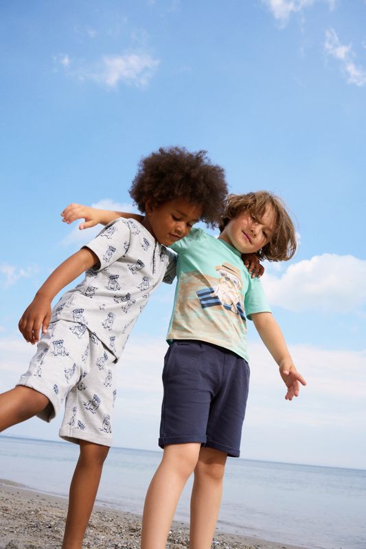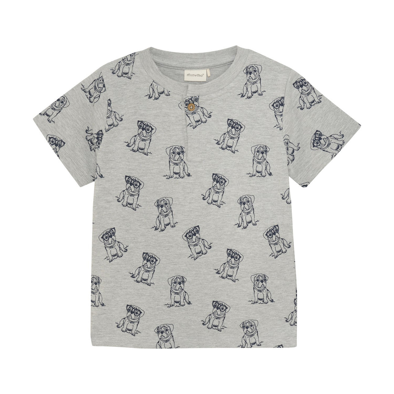 Nice short-sleeved t-shirt with allover print from Minymo. The t-shirt is made in a soft sweat cotton blend and has a cute dog print all over. The T-shirt closes with a button at the front.