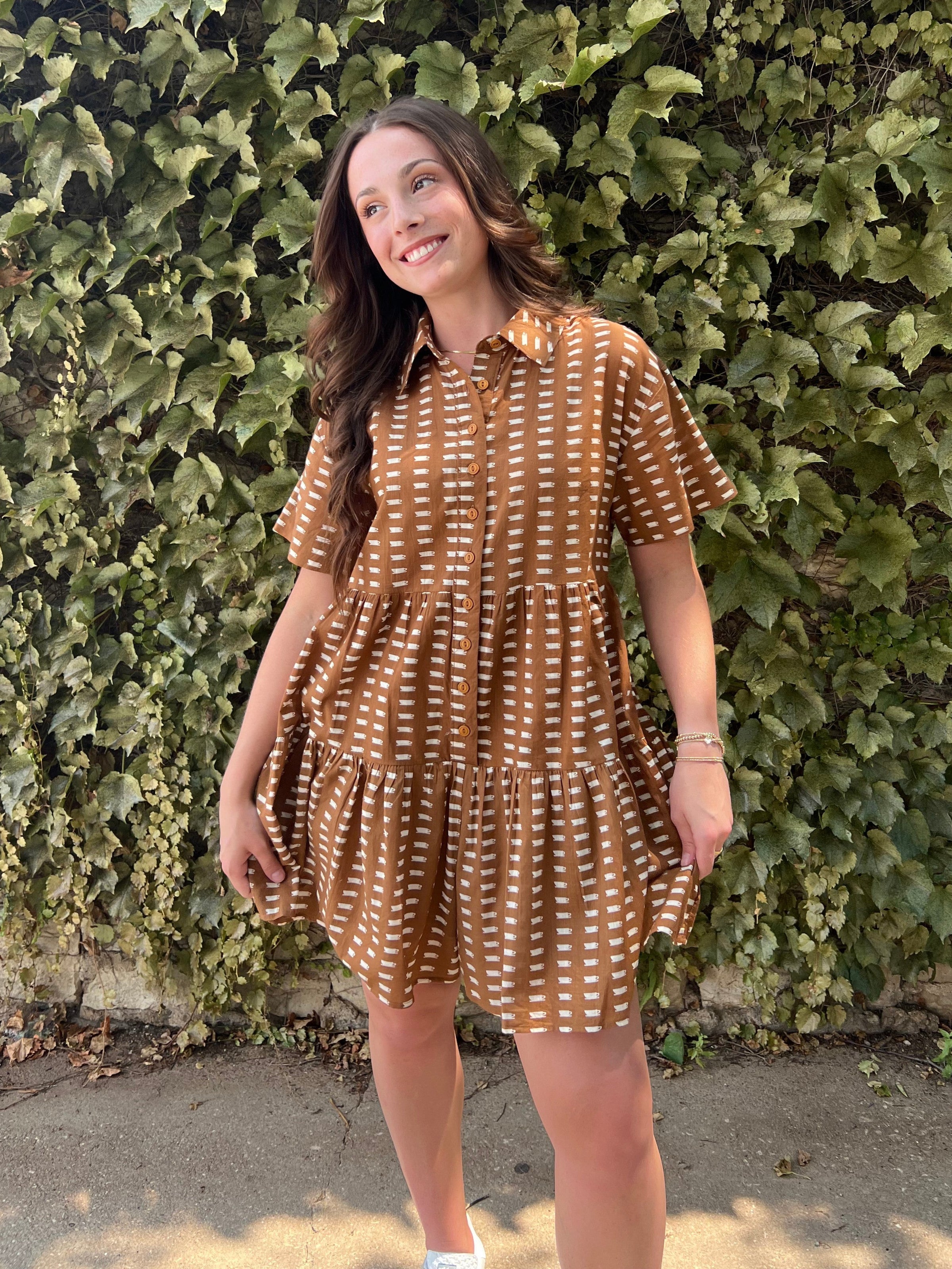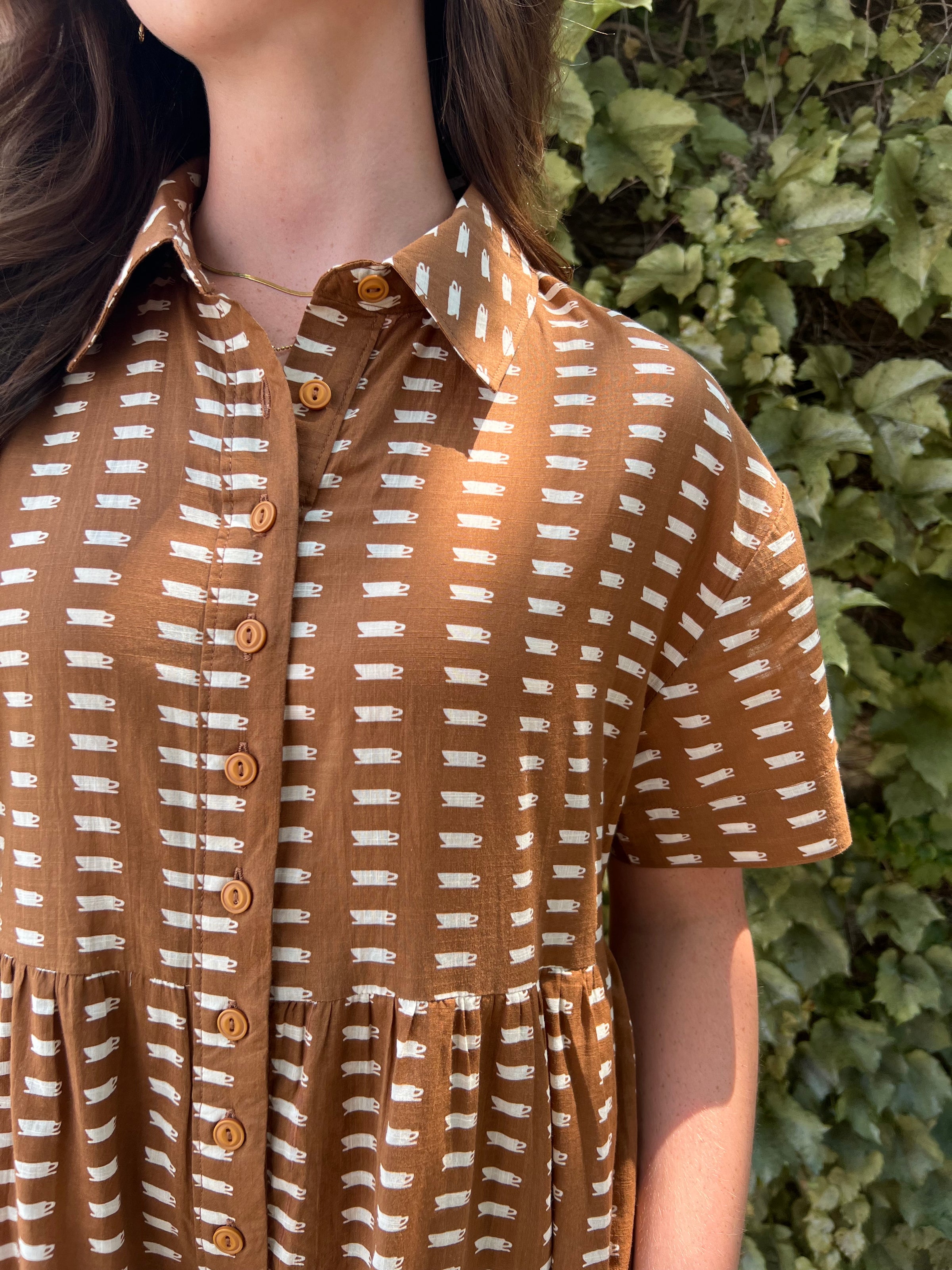 The Uncle Frank By Ivy Jane Coffee Print Romper in Copper is made from breathable 100% cotton with a lined skirt and pockets. Its fun coffee print adds style, and it’s easy to care for with simple machine washing and low drying. Perfect for comfortable, everyday wear.
