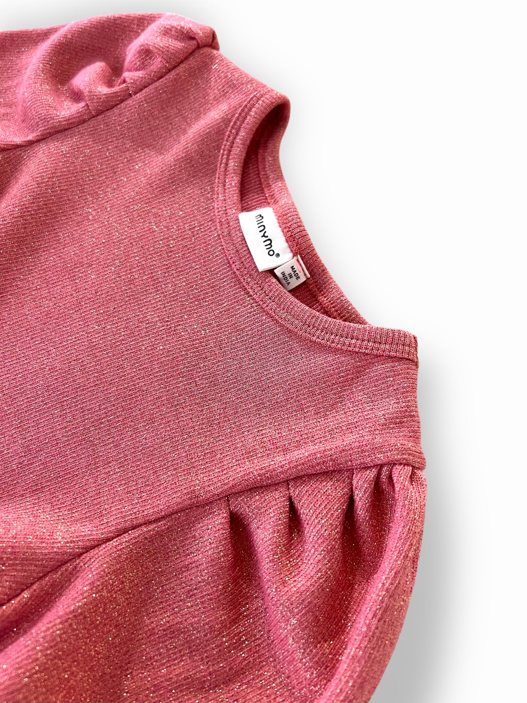 Twirl and sparkle in this enchanting dusty dark pink dress! Featuring a playful tiered design and magical glitter fabric, this short sleeve beauty is perfect for your little princess. Watch her eyes light up with joy as she dances and plays in this dazzling outfit made especially for little girls who love to shine!