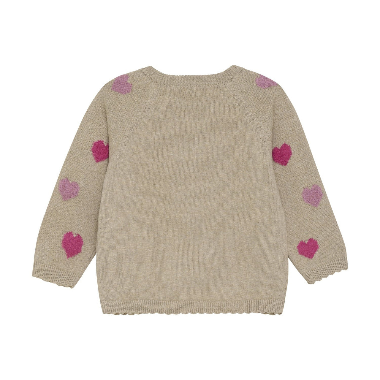 Keep your little one cozy and charming in this playful Heart Cardigan from Minymo. Crafted from a soft blend of 70% cotton and 30% acrylic, it offers gentle warmth and breathability. Delightful heart patterns and ruffled button details add a sweet touch, while ribbed edges at the sleeves and hem ensure a snug, comfortable fit. Ideal for layering on chilly days or dressing up for special moments, this cardigan in beige melange is a perfect wardrobe staple.