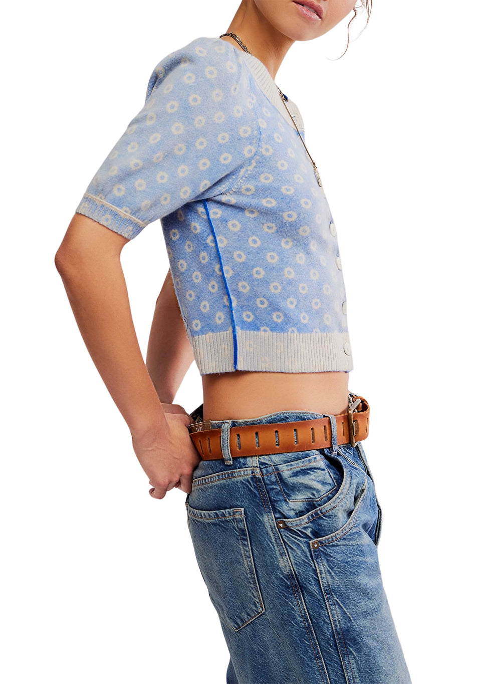 Cozy meets cute in the Isla Pattern Cardi by Free People. This slightly cropped cardigan features a fun button-front design and short sleeves, perfect for layering without overheating. The ribbed cuffs and hemline add a touch of texture, while the luxurious wool and cashmere blend keeps you snug and soft all day. Embrace warmth and style with a playful twist!