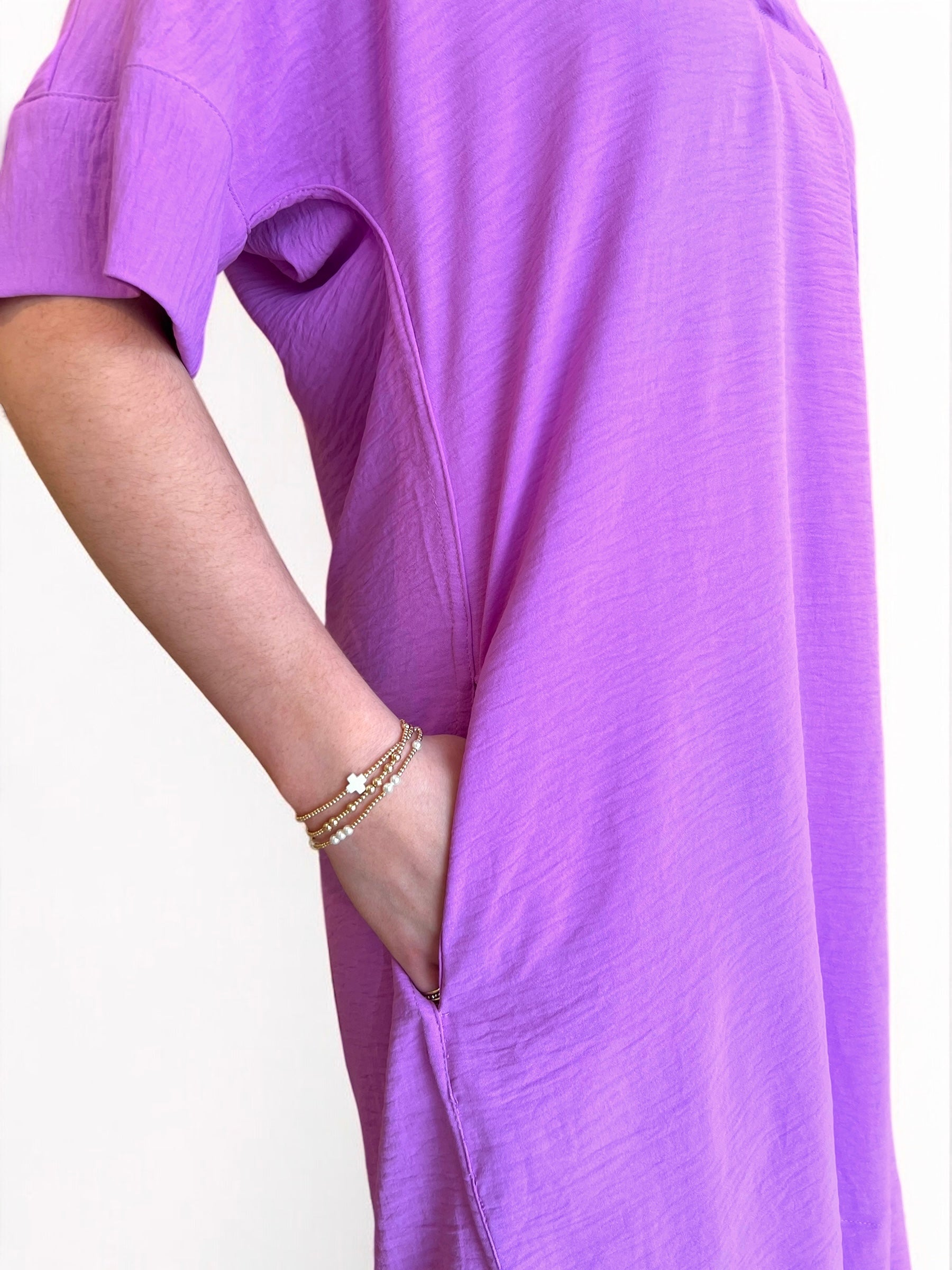Introducing the Ivy Jane Popover Dolman Dress! In a stunning purple orchid color, this lightweight dress effortlessly combines style and comfort. Perfect for any occasion - you'll never want to take it off!