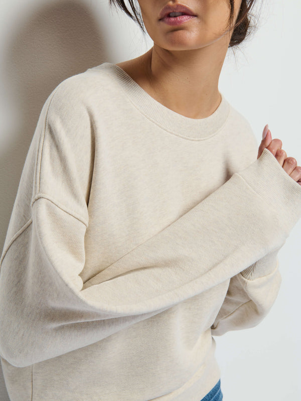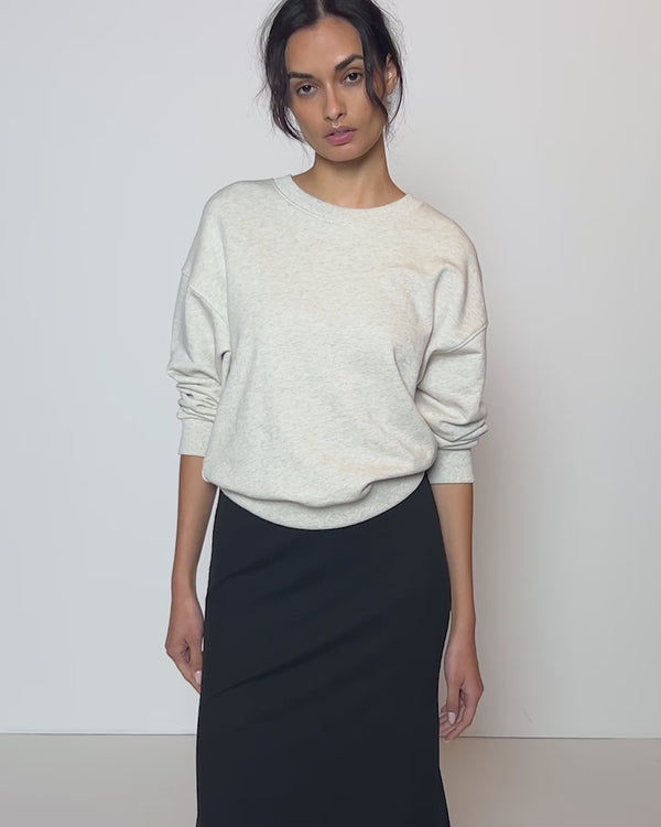 The truly effortless essential you’ve been waiting for. A classic crew neck sweatshirt with dropped shoulders and an oversized fit. Because comfort can look chic, too. (This one comes in Heather Oatmeal.)
