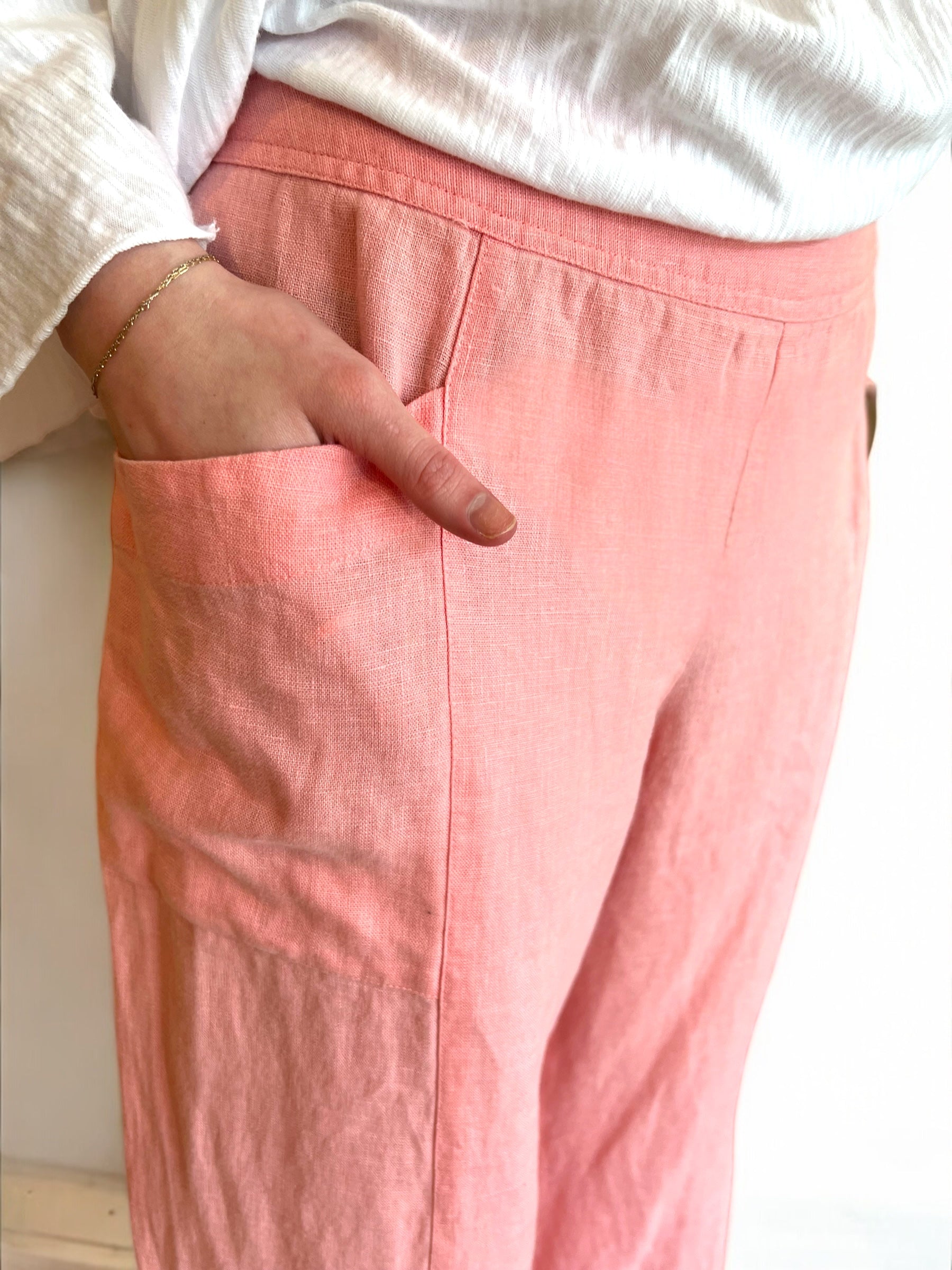 Stay cool and comfortable this summer with our Linen Slouch Pocket Pants by Ivy Jane. These pants are perfect for everyday wear with their front pockets and crop length that flatter averaged sized women. Made from high-quality linen fabric, they provide a soft and breathable feel.