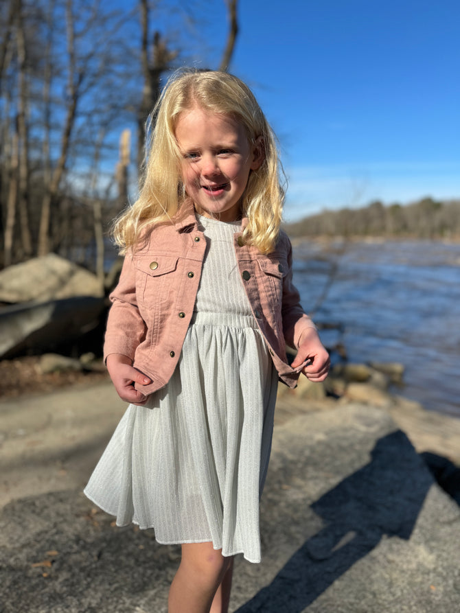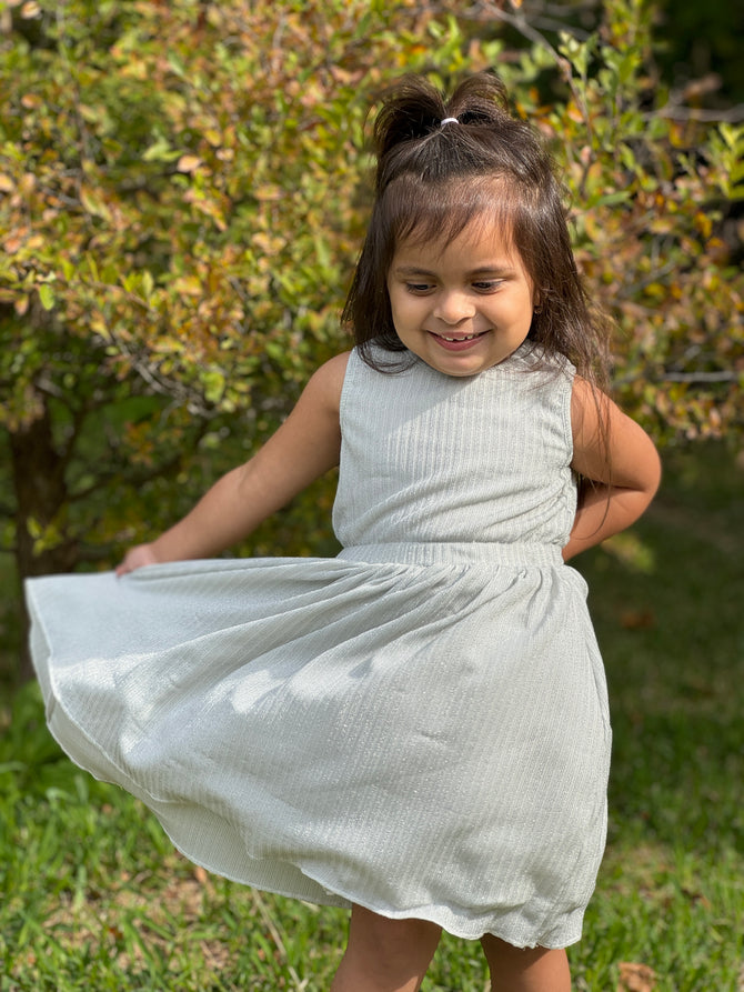 Get ready to shine this holiday season in our Silver Sparkle London Dress! Featuring a subtle silver stripe and a pleated full skirt, this dress is the perfect addition to your festive wardrobe. Don't miss out on this holiday must-have!