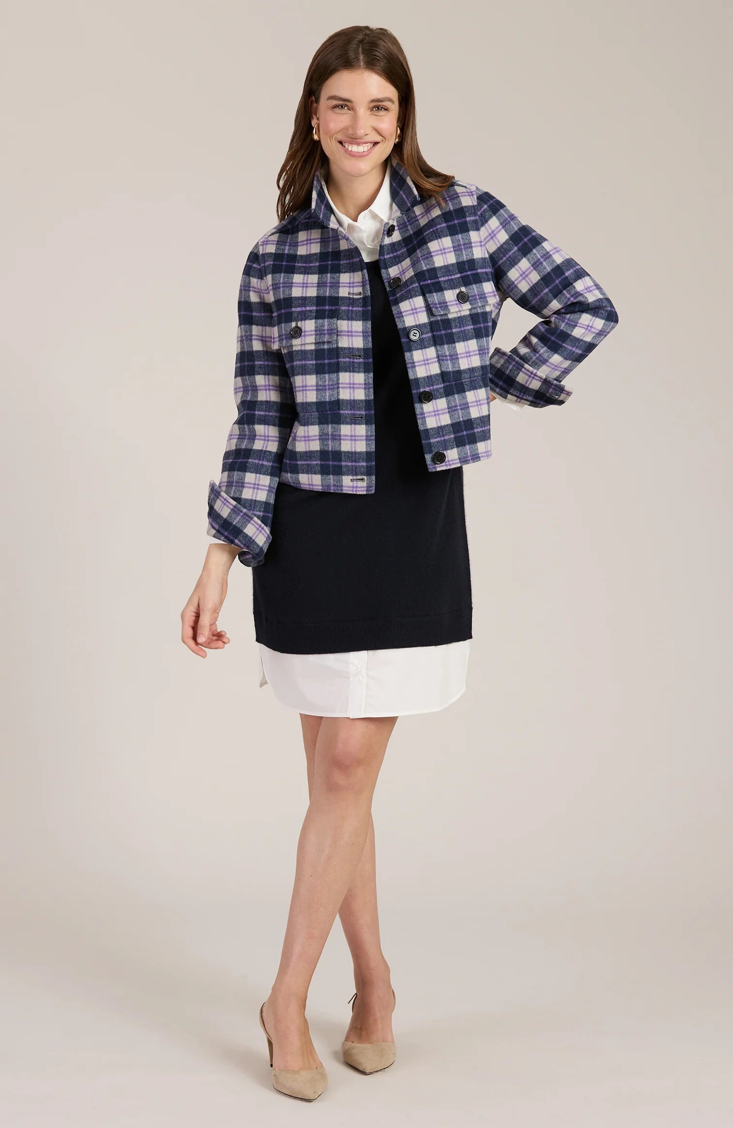Perfect in plaid: top off your look and make a chic statement in this cropped jacket. Mallory makes an outfit all on her own, so just add a layering piece and you're out the door looking fabulous. What's better than easy dressing when it comes to a new season?