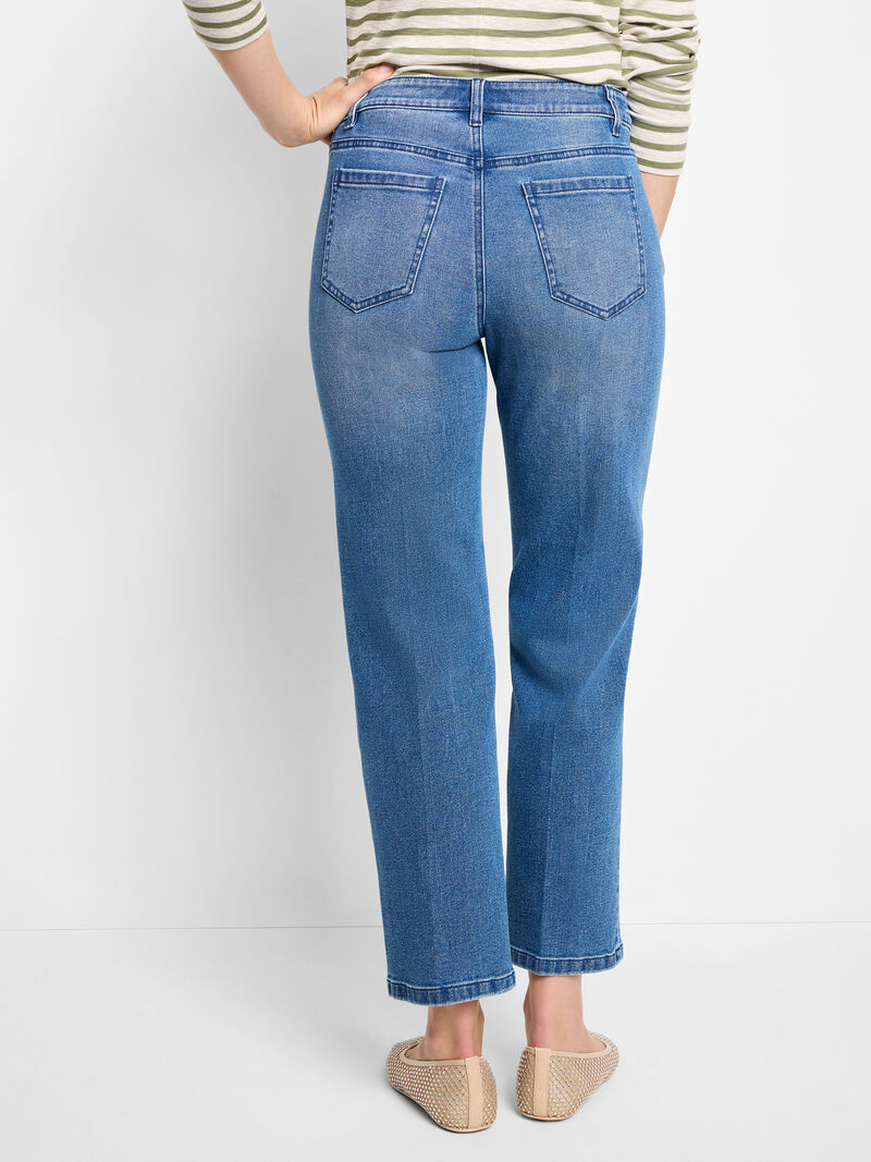 Who doesn't love Recess? Our easy straight leg denim silhouette by Nic & Zoe feels like a little break from routine, only this one lasts all day. Made from a buttery soft denim that feels broken in on the first wear and only gets better with age. With a rise that sit just below the waist and a breezy cropped hem that hits at the ankle, this very versatile jean is as close as it comes to denim perfection.