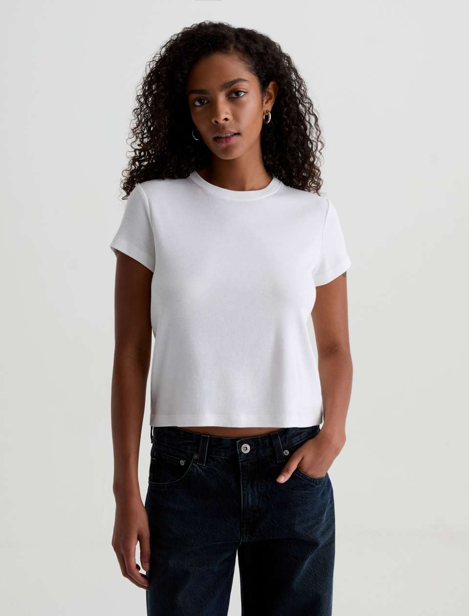 The Sadie Crew by AG brings a vintage vibe to your everyday rotation. With its '90s-inspired cropped fit and short sleeves, it delivers that effortlessly cool look. The ribbed fabrication adds soft texture and a body-hugging feel that’s both comfortable and flattering.