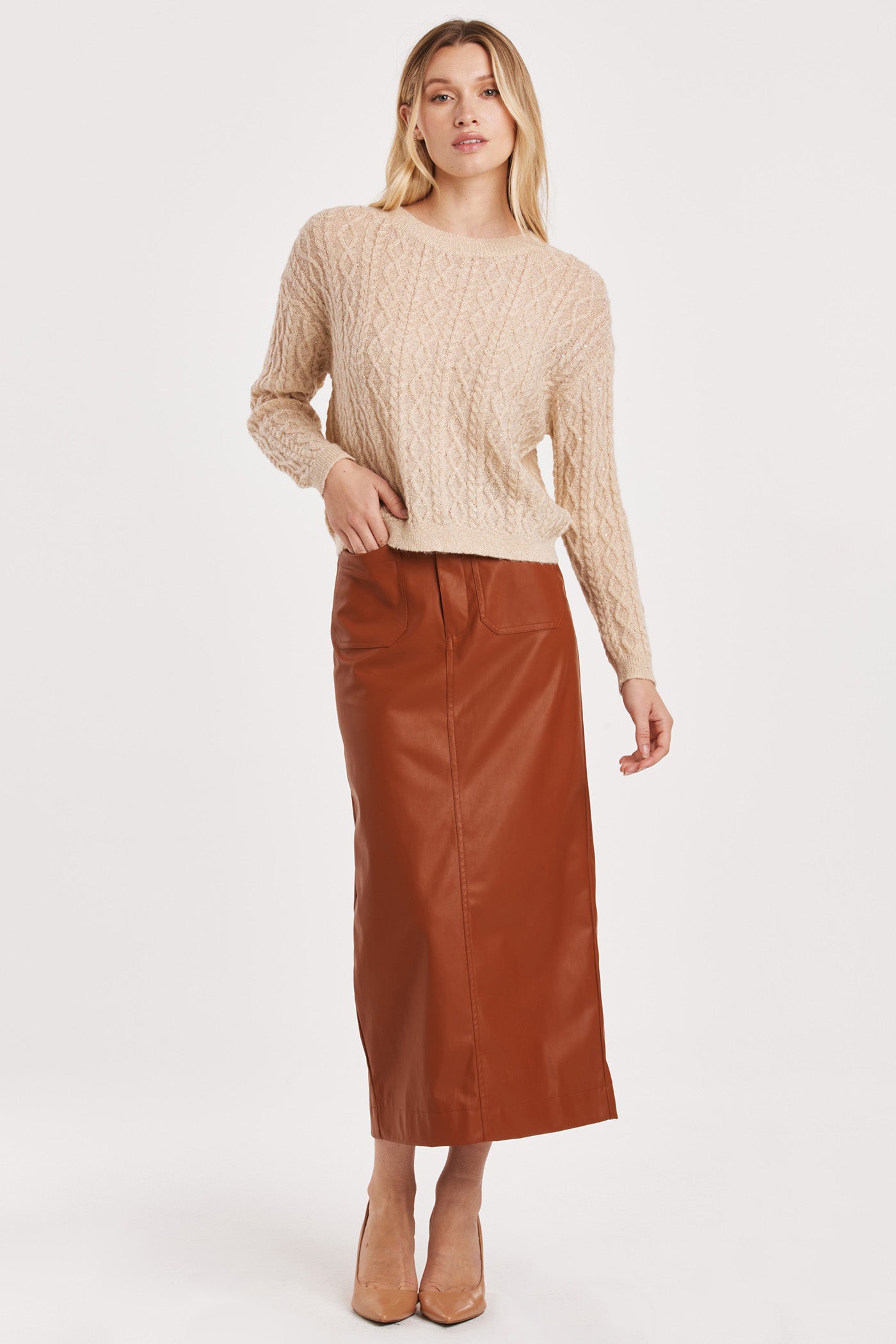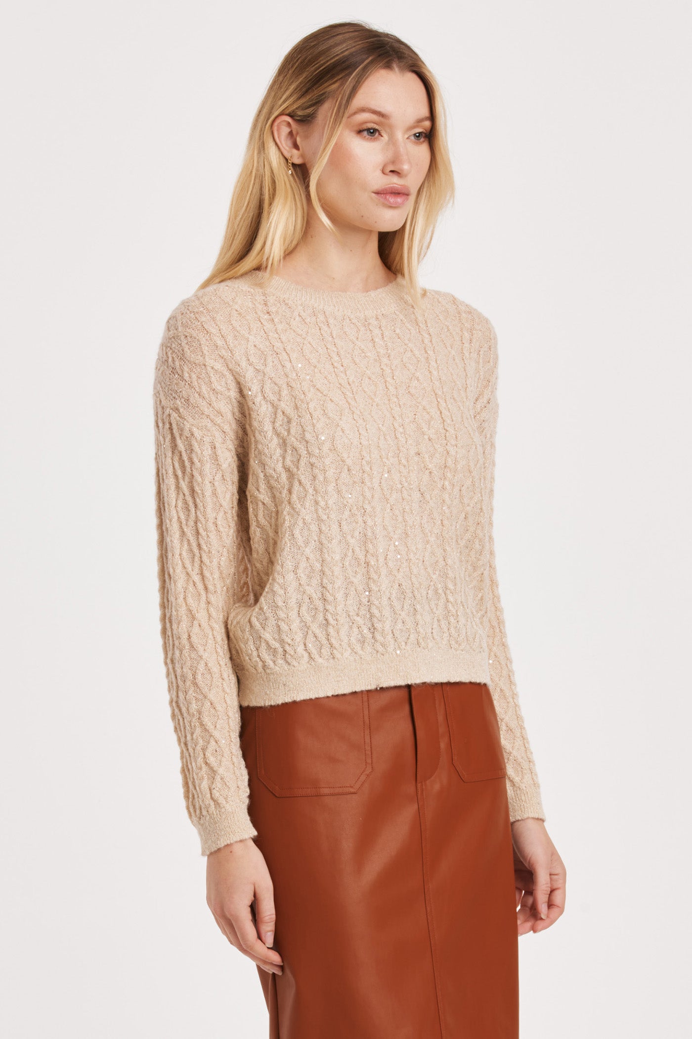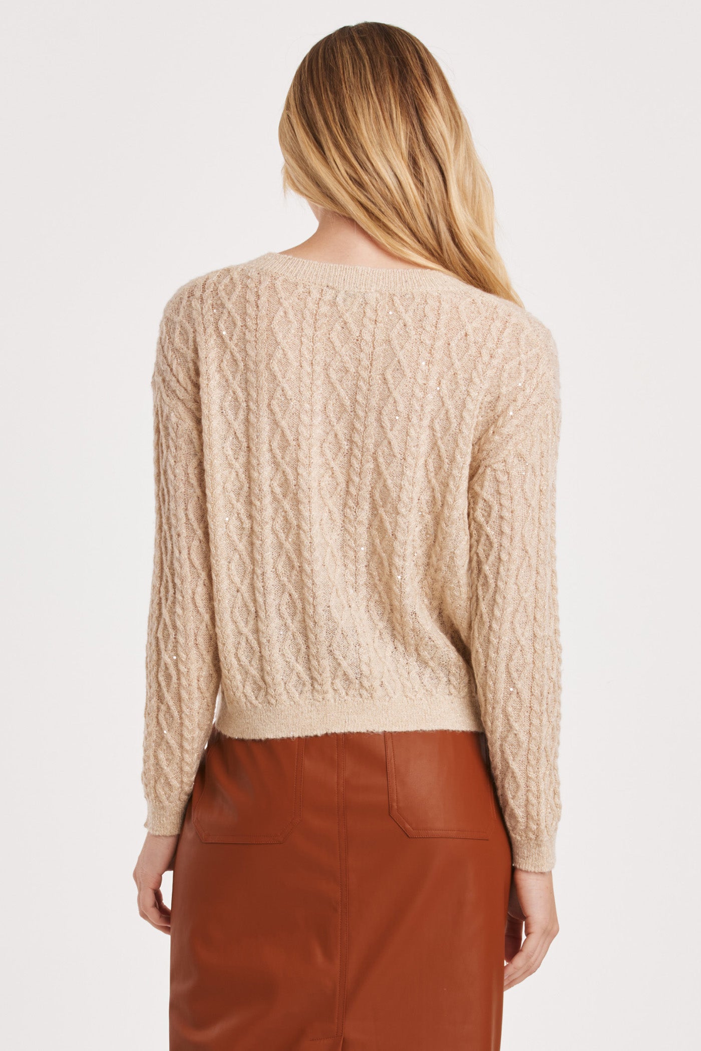 Indulge in luxury with Another Love's Cable Knit Sequin Sweater. Made from a blend of acrylic, nylon, polyester, and wool, this sweater boasts both warmth and style. The intricate cable knit design is elevated with delicate sequin detailing, making it the perfect addition to your high-end wardrobe.
