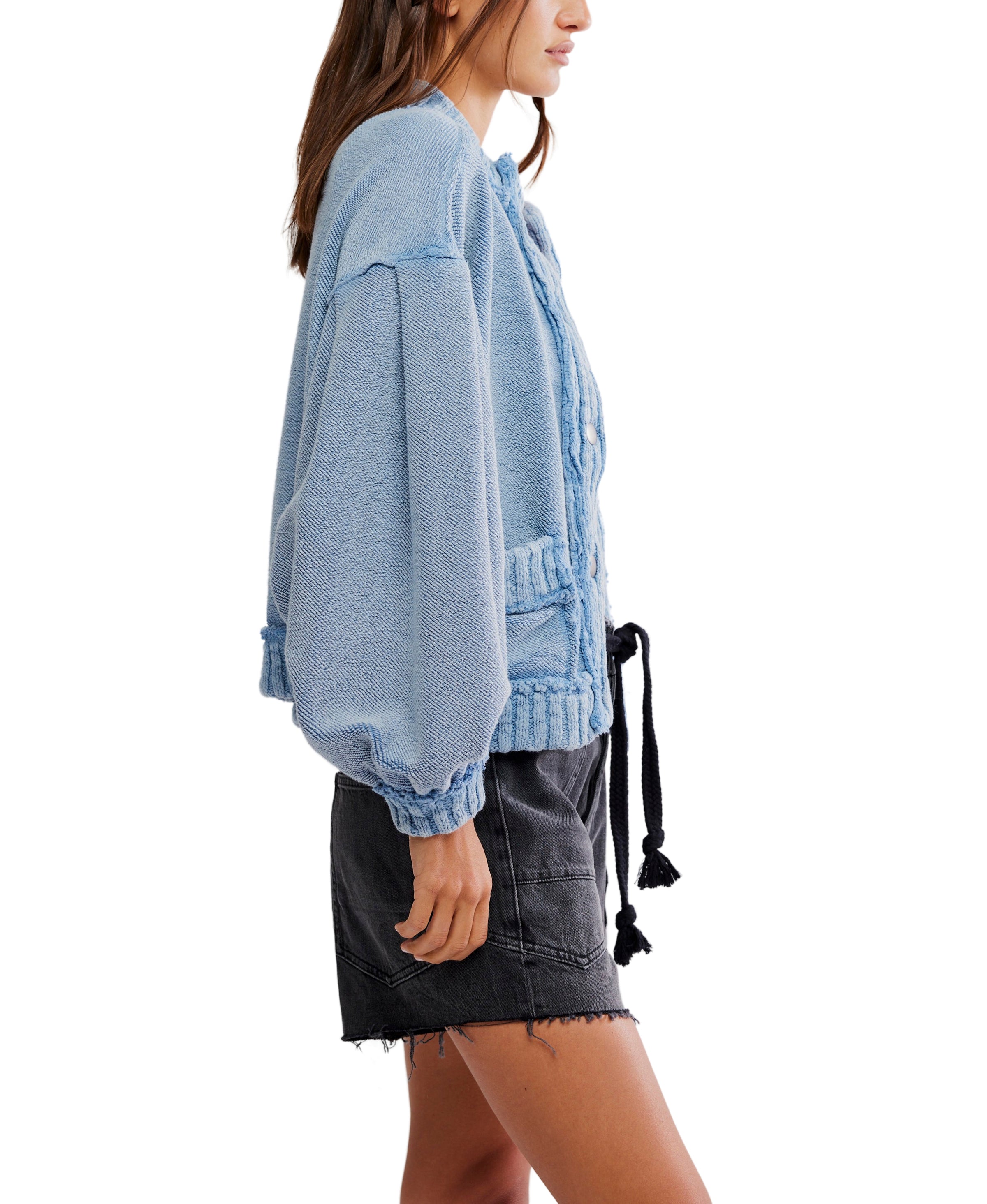 This adorable cardi from Free People wraps you in softness with its cozy terry fabric and laid-back slouchy vibe. Featuring roomy drop-shoulder sleeves, handy front patch pockets, and easy button closures, it’s got all the comfy details you need. With ribbed trim and neat seams, it’s the perfect cozy companion to layer over your go-to tees and tanks.