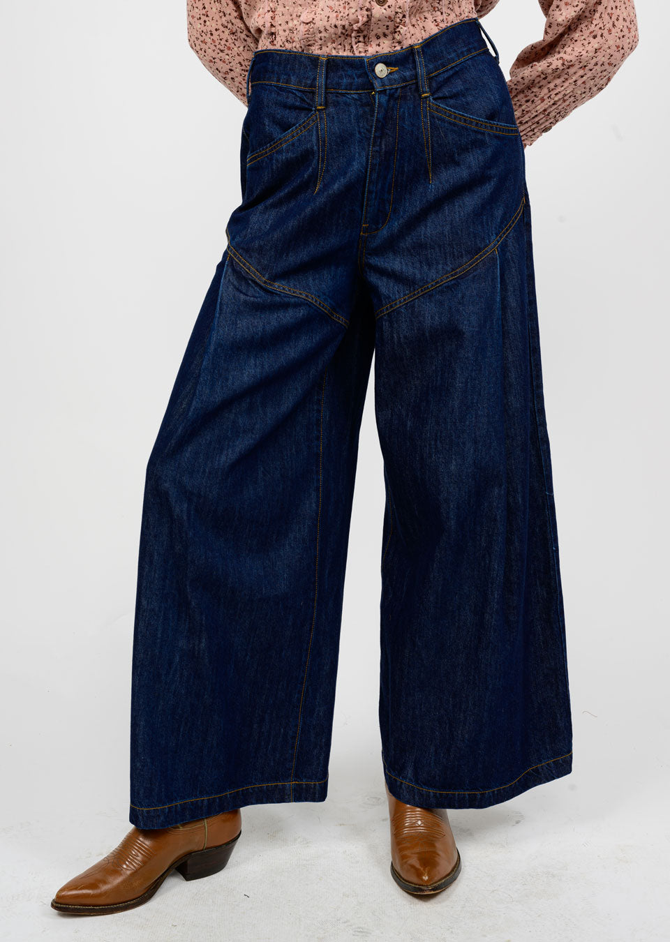The Western Flare Jean by Ivy Jane brings a playful twist to classic denim with its wide flare leg and rich dark wash. Featuring front darts and functional front and back pockets, these jeans combine comfort and style for a fun, flattering fit that’s perfect for lively days and casual adventures.